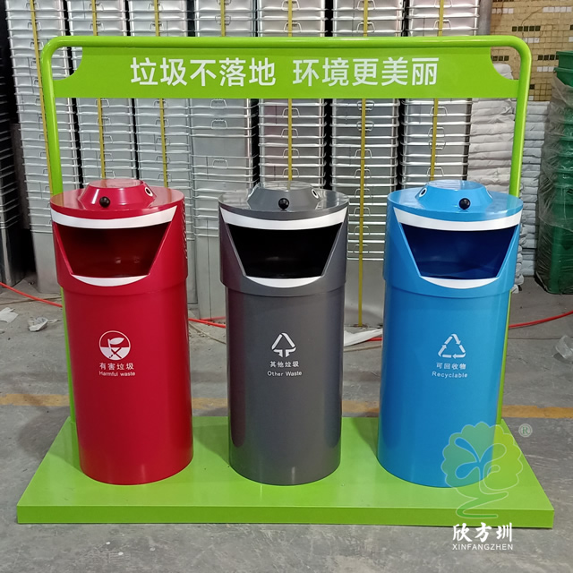 新款大型三分類鋼制垃圾桶廣泛適用于戶外垃圾分類收集,鋼制垃圾桶采用優(yōu)質(zhì)的冷軋鋼板制作色澤亮麗美觀,內(nèi)筒標配為圓形鍍鋅板可以另選塑料、玻璃鋼、不銹鋼、或者塑料內(nèi)桶等,冷軋鋼并具有防潮、防火、防腐、防蛀、防銹、耐高溫、易清理不脫落,不起層使用壽命長等特點。