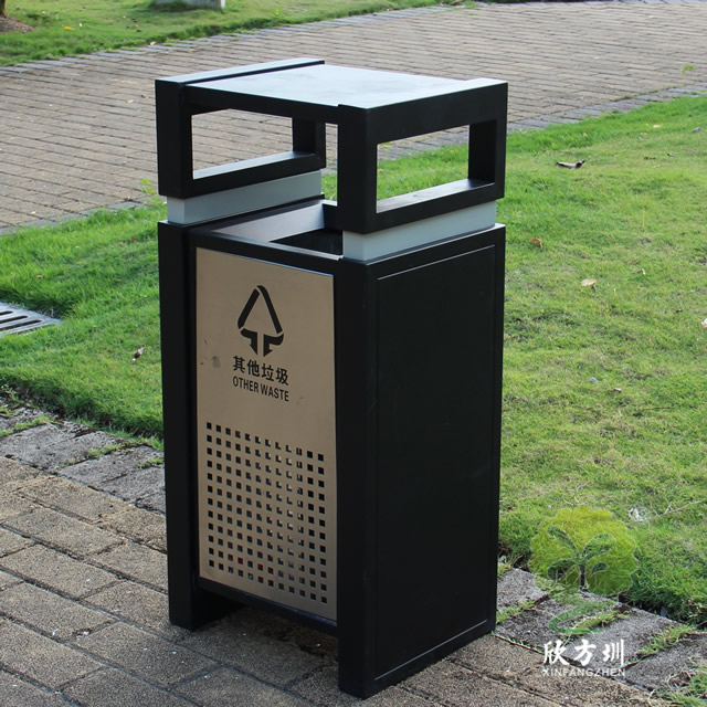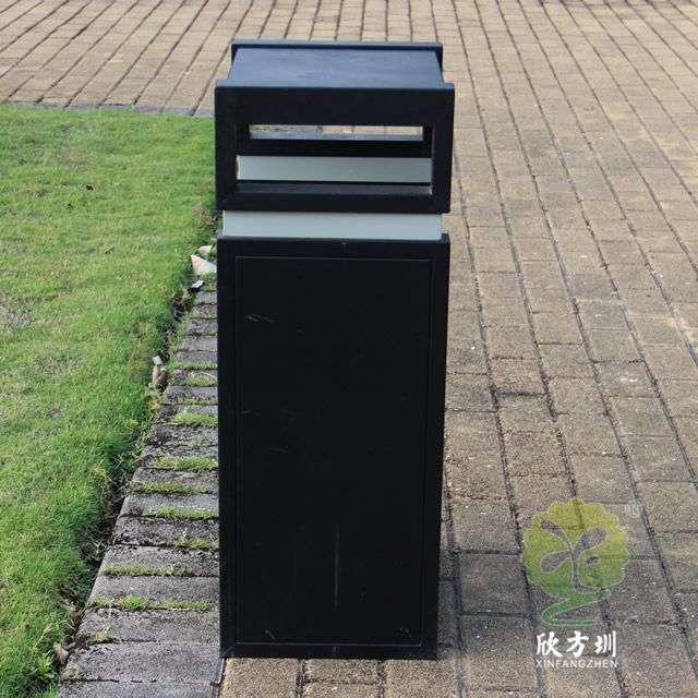方形組合式鋼板分類垃圾桶采用加厚的優(yōu)質(zhì)的冷軋鋼板裁剪打磨工藝制作而成,方形組合式前后鏤空設(shè)計,桶身整體為黑色噴涂噴塑工藝上色,投口旁邊左右兩橫桿采用了白色噴塑,垃圾桶前后保留了金屬銀色,桶身前后鈑金沖孔工藝并且絲印垃圾分類圖標(biāo),三角鑰匙開門取出內(nèi)筒。