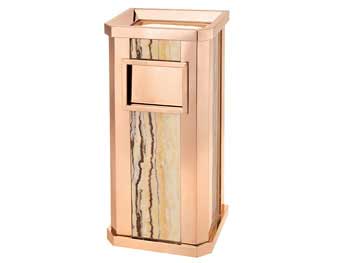 欣方圳鈦金垃圾桶由鍍金鋼板或不銹鋼和大理石制作而成,表面經(jīng)除油、清洗、酸洗、清洗、表調(diào)、磷化、清洗、烘干、靜電粉末噴涂、高溫塑化、冷卻等工藝處理。極耐磨損、耐酸、耐堿,耐腐蝕性,永遠(yuǎn)不會(huì)生銹。產(chǎn)品表面呈金黃色,光滑亮麗,彰顯高貴本色,適用于各種高檔室內(nèi)場(chǎng)合。