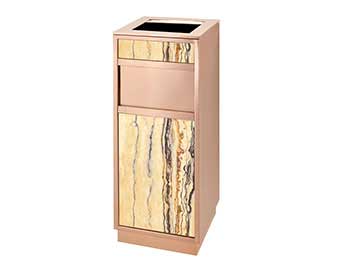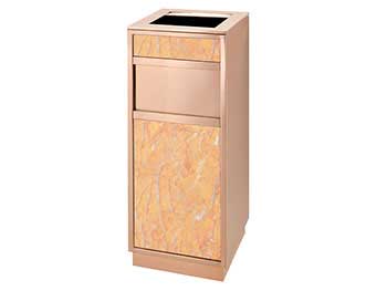欣方圳鈦金垃圾桶由鍍金鋼板或不銹鋼和大理石制作而成,表面經(jīng)除油、清洗、酸洗、清洗、表調(diào)、磷化、清洗、烘干、靜電粉末噴涂、高溫塑化、冷卻等工藝處理。極耐磨損、耐酸、耐堿,耐腐蝕性,永遠不會生銹。產(chǎn)品表面呈金黃色,光滑亮麗,彰顯高貴本色,適用于各種高檔室內(nèi)場合。