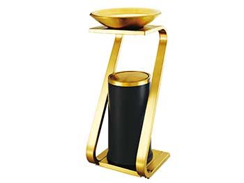 欣方圳鈦金垃圾桶由鍍金鋼板或不銹鋼和大理石制作而成,表面經(jīng)除油、清洗、酸洗、清洗、表調(diào)、磷化、清洗、烘干、靜電粉末噴涂、高溫塑化、冷卻等工藝處理。極耐磨損、耐酸、耐堿,耐腐蝕性,永遠不會生銹。產(chǎn)品表面呈金黃色,光滑亮麗,彰顯高貴本色,適用于各種高檔室內(nèi)場合。