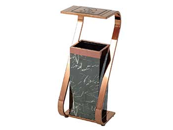 欣方圳鈦金垃圾桶由鍍金鋼板或不銹鋼和大理石制作而成,表面經(jīng)除油、清洗、酸洗、清洗、表調(diào)、磷化、清洗、烘干、靜電粉末噴涂、高溫塑化、冷卻等工藝處理。極耐磨損、耐酸、耐堿,耐腐蝕性,永遠不會生銹。產(chǎn)品表面呈金黃色,光滑亮麗,彰顯高貴本色,適用于各種高檔室內(nèi)場合。