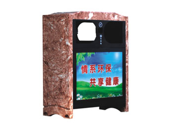 仿大理石垃圾桶的整體造型大氣美觀:箱體、蓋、側(cè)板和門(mén)顏色為青灰花色,而前板后板、投放口、內(nèi)桶均為黑色,門(mén)跟合頁(yè)裝有自動(dòng)關(guān)起裝置,并標(biāo)有“可回收”和“不可回收”的字樣;在功能上還具有抗腐蝕、抗酸堿、抗紫外線、在自然條件下能耐高低溫、沒(méi)有回收盜用價(jià)值等優(yōu)點(diǎn)。