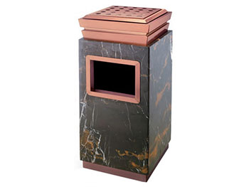 欣方圳鈦金垃圾桶由鍍金鋼板或不銹鋼和大理石制作而成,表面經(jīng)除油、清洗、酸洗、清洗、表調(diào)、磷化、清洗、烘干、靜電粉末噴涂、高溫塑化、冷卻等工藝處理。極耐磨損、耐酸、耐堿,耐腐蝕性,永遠(yuǎn)不會(huì)生銹。產(chǎn)品表面呈金黃色,光滑亮麗,彰顯高貴本色,適用于各種高檔室內(nèi)場(chǎng)合。